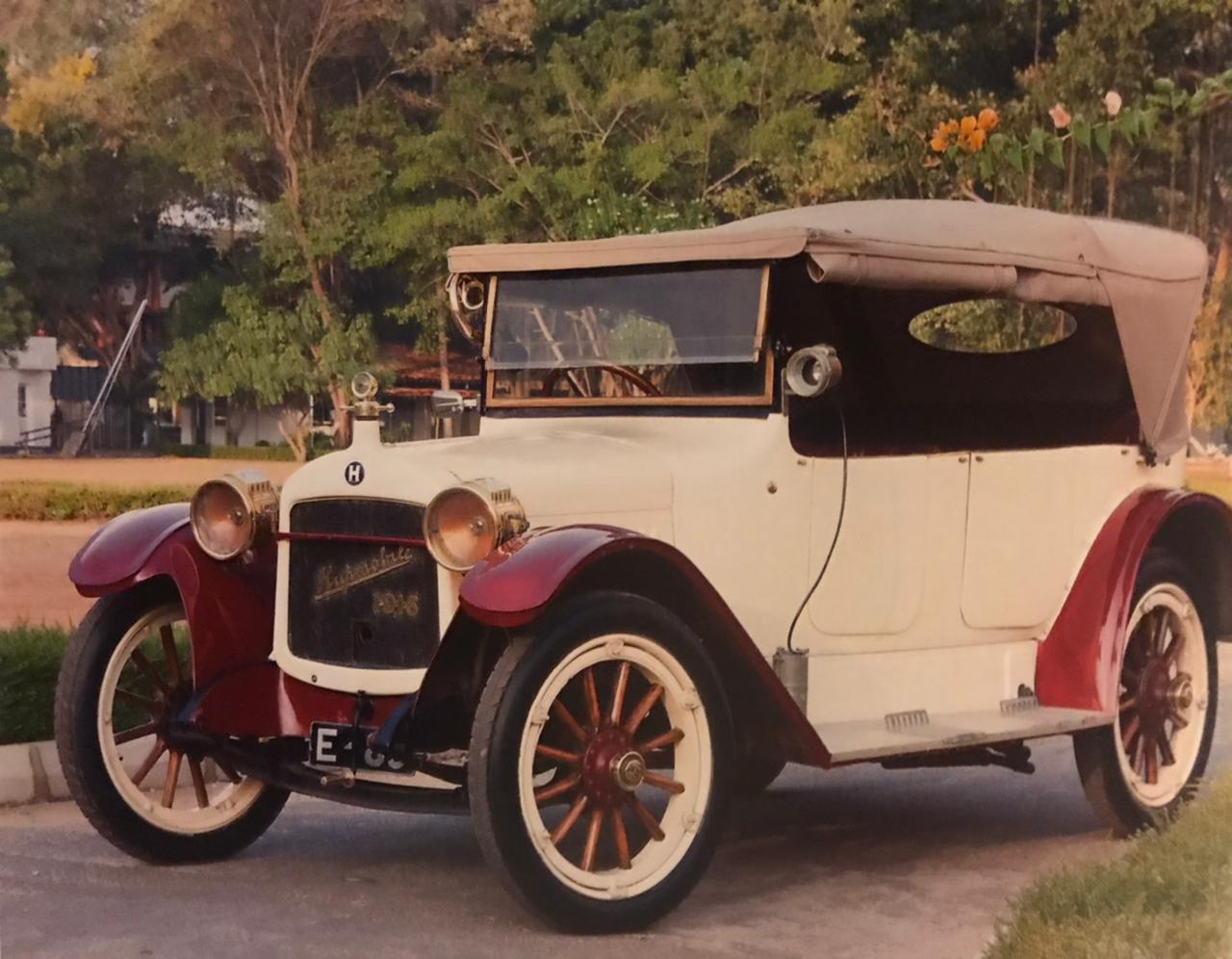 The Hupp Motor Car Company was founded by the brothers Robert Craig and Louis Gorham Hupp in 1908 in Cleveland , Ohio , USA . In 1909 they built their first car , a 2 - seater roadster , called the Model 20. In 1911 they built a touring car with three forward speeds and adhered to 4 - cylinder side - valve units until 1924. In 1912 they introduced the Model H , also referred to as the Model 32 , to replace the Model 20. In 1915 the Model K replaced the Model H. By the 1920s they were a significant producer of cheap and popular cars referred to as ' cycle ' or ' light cars . However , the Great Depression affected the Company and production ceased in 1941 . The car featured is a 1915 Hupmobile K Series , 5 - seater Touring model with registration number E - 89 , which was first registered in 1916. It was owned by the Nathaniels family of Polgahawela until 1961. Thereafter it was owned by Edward Raymond who sold it in 1969 to the well known motoring enthusiast Vere de Mel . After his demise in 1978 the car was badly neglected with many parts missing . It was found with a wooden block on the brake pedal a former owner of diminutive stature had placed in order to reach it . The current owner purchased the car in 1997 and carried out a complete restoration . It has been displayed at many motor shows and took part in the vintage run to Kandy in 1999 .