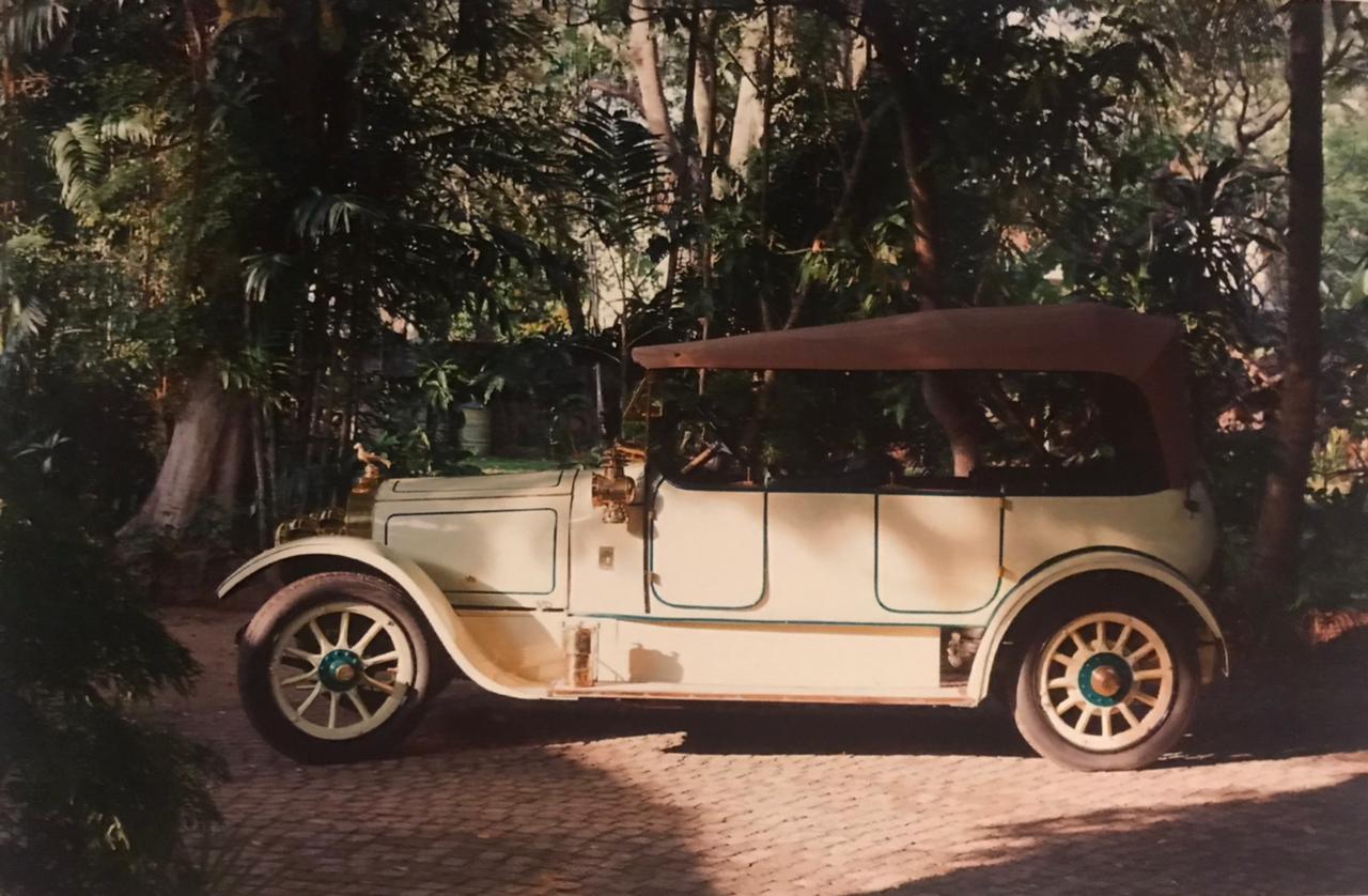 This Paltney car was first owned by Major C.A. Gibson , a veteran of the Second Anglo - Boer War , which ended in 1902 . Major Gibson was held as a Prisoner of War , one of 5,000 POWs sent to Ceylon . Having lost an arm in the war , his daughter is said to have got the Paltney specially built for him with tiller steering and shipped from England in 1913 to his home in Kandy . The car was subsequently owned by a close friend of Major Gibson , Urial Mendis . The Paltney was abandoned in 1940 and over a period of 35 years reached a derelict state ending up in a garage in Lindula . It was located in 1975 by vintage car aficio nado and Assistant Commissioner of Motor Vehicles , Tilney Peiris , whose enthusiasm and persuasion lead to the garage owner eventually gifting him the which was meticulously restored to an excellent run ning condition . The rare Paltney proceeded to take pride of place at many Vintage Car Club rallies where Mr. Peiris and his wife would appear at the helm of the car dressed in period costume . An unfortunate collision with a bus in 1990 damaged the tiller steering mechanism and the car was modified to run with a steering wheel . The car was acquired by the President of the vintage car club of Ceylon , Farih Fauz in 1992 and sold to its current owner in 2004 .
